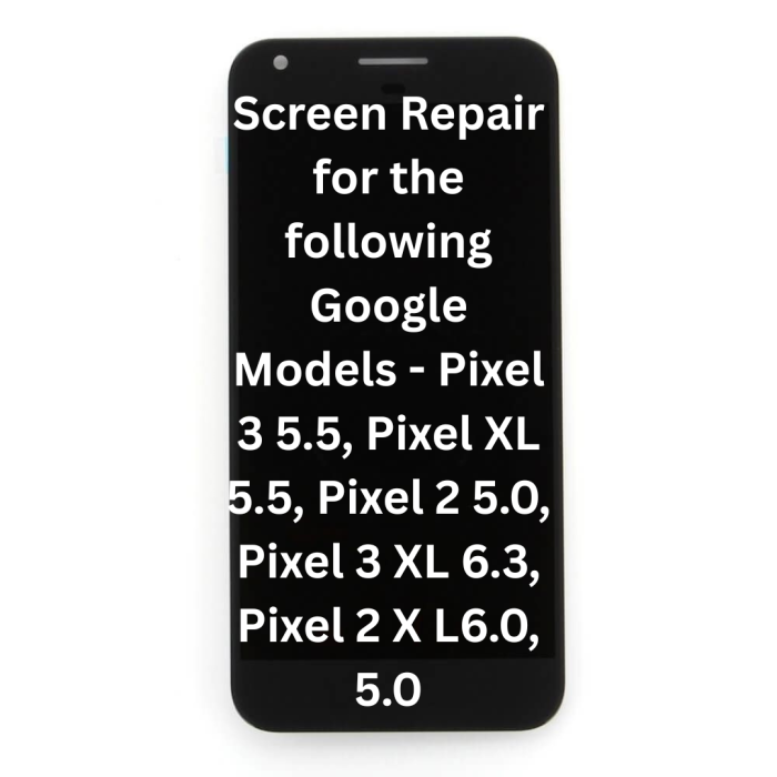 Screen Repair for the following Google Models - Pixel 3 5.5, Pixel XL 5.5, Pixel 2 5.0, Pixel 3 XL 6.3, Pixel 2 X L6.0, 5.0