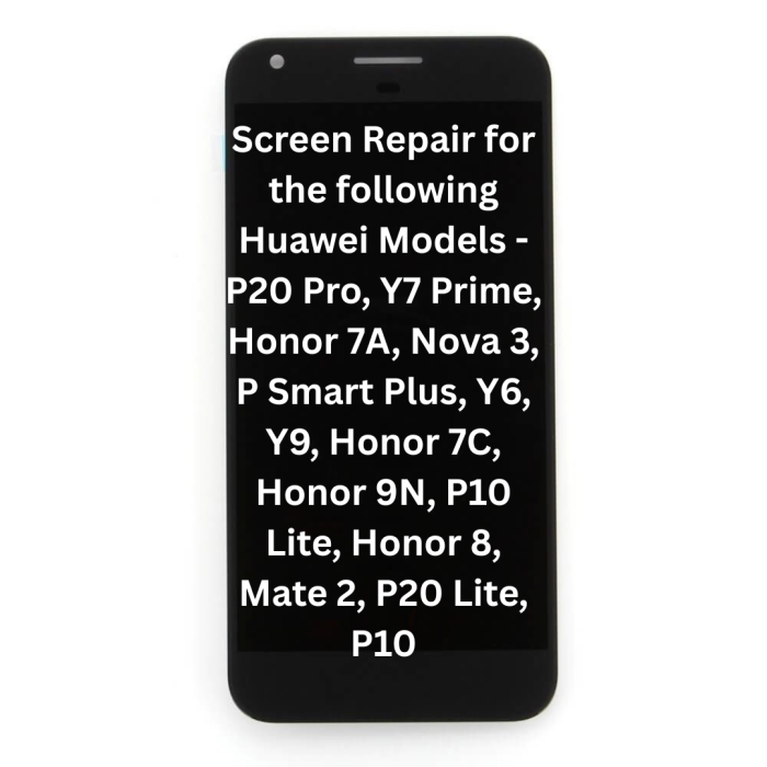 Screen Repair for the following Huawei Models - P20 Pro, Y7 Prime, Honor 7A, Nova 3, P Smart Plus, Y6, Y9, Honor 7C, Honor 9N, P10 Lite, Honor 8, Mate 2, P20 Lite, P10